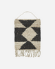 Elevate your interior with this exquisite wall art, crafted from jute and mango wood. Featuring a modern graphic pattern and fringes, it adds texture and warmth to any room, making it a perfect statement piece.