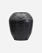 Introduce a touch of artistry to your living space with this handmade vase featuring an exquisite black finish. The embossed pattern gives each piece a unique charm, making it a captivating artwork in itself. Perfect for showcasing large bouquets or branches, it adds warmth and personality to any room in your home.