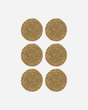 Handwoven from natural seagrass, these coasters provide a perfect blend of functionality and style. Protect your table surfaces with these gentle and durable coasters, ideal for placing drinks, coffee cups, or small bowls. Each set comes with six coasters and a matching storage basket, offering a practical and charming solution for your dining area. The natural colour seamlessly integrates into any décor, creating a cosy and inviting atmosphere.