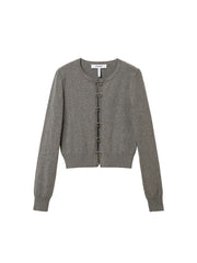 A twist on the classic knitted cardigan, the Cyra is knitted from 100% cotton and fastened with polished metal piercing buttons. Crew neck and classic ribbed cuffs. Slightly small fitting; size up for a more relaxed look.