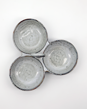 Enhance your dining experience with these elegant serving bowls, perfect for presenting small snacks, dips, or confections. Crafted from stoneware and featuring a reactive glaze, each bowl boasts unique variations in grey and blue tones, adding a rustic charm to your table setting.