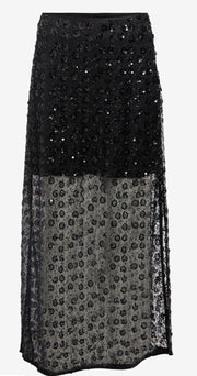 Sequin detailed lace maxi skirt - Part of a matching set - High waist - Concealed zip fastening - Floral design - Half lined - Side slit detail - Regular fit - Model is wearing size 36