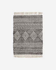This handmade rug brings a welcoming and relaxed touch to your home. The black and natural shades form an ethnic-inspired pattern, while its fringed edges add personality and texture. Place it in your hallway, bedroom, or in front of your terrace door for a beautifully grounded look.