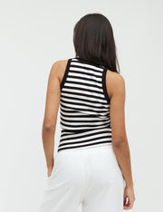 Basic tank top with stripes. - Material: 95% polyester, 5% Elastane - Round neck - Sleeveless - Tight fit - Normal length - Perfect under a blazer