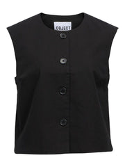 - Cap sleeved waistcoat - Linen blend - Part of a matching set - Round neck - Dart stitching at chest - Button-up front - Regular fit