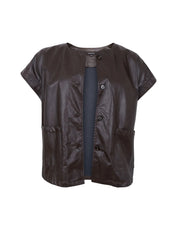 Black Colour Juliet Vegan Leather Vest Blouse Chocolate Brown