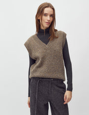 Knitted vest with v-neck. - Material: 50% Acrylic, 50% Wool - Knit - V-neck - Loose fit - Regular length - Wool quality The model's height is 176 cm and she is wearing size S.