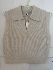 Knitted vest. - Material: 51% Acrylic, 36% Nylon, 7% Elastane, 6% Wool - Knit - Collar - Loose fit - Regular length The model's height is 176 cm and she is wearing a size S.