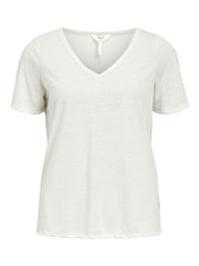- V-neck t-shirt - Linen blend - Short sleeves - Regular fit