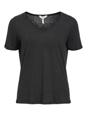 - V-neck t-shirt - Linen blend - Short sleeves - Regular fit