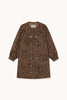 Crafted from heavy twill with a mocha base and tonal animal print. This dress features a statement collar and a double-breasted front with silver snap closures. Designed with side pockets and voluminous sleeves, finished with cuffs and button openings for a refined silhouette.